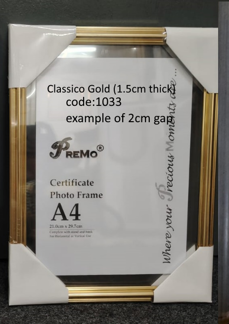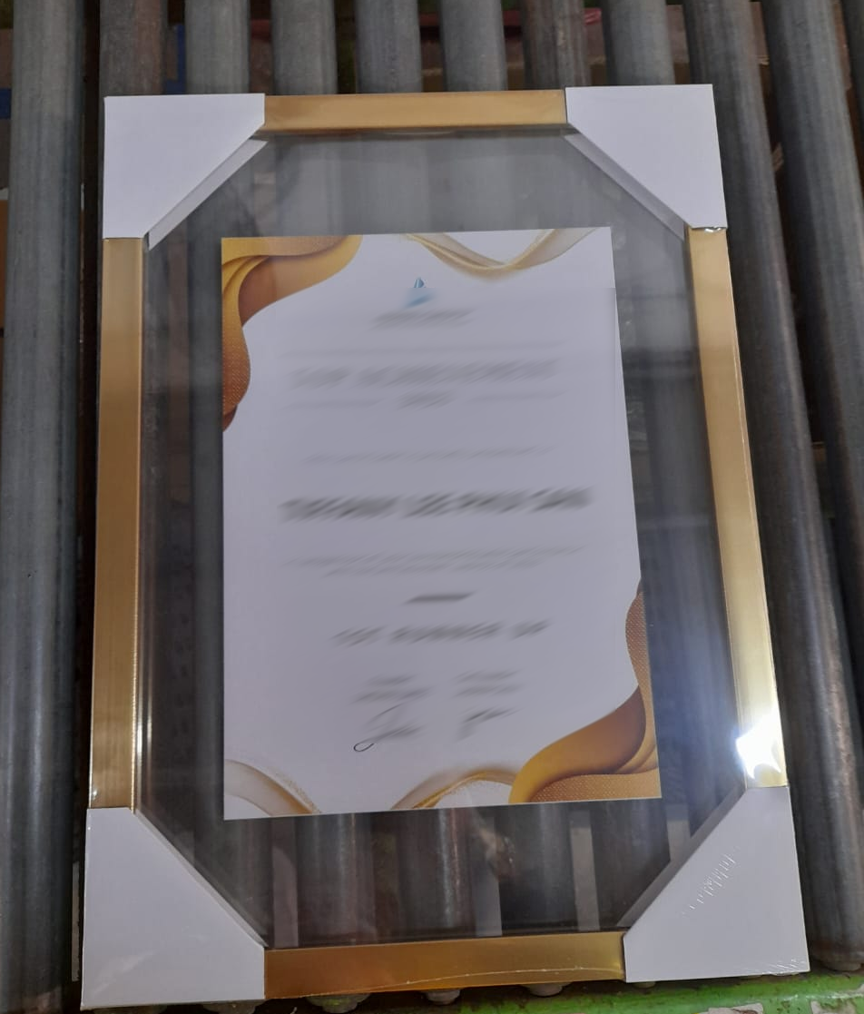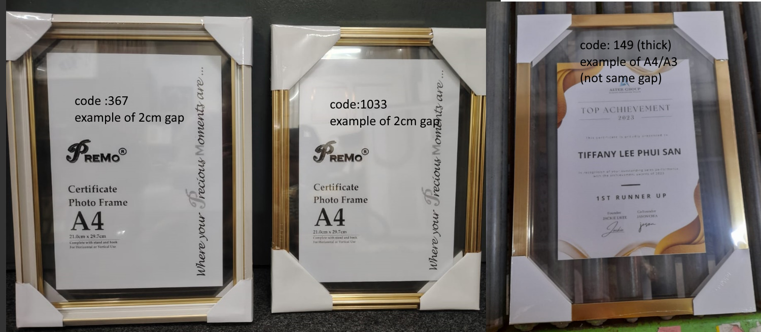 Frame inner size :30x40cm ; center fitting A4 (21x29.7cm) certificate with 5cm transparent spacing.