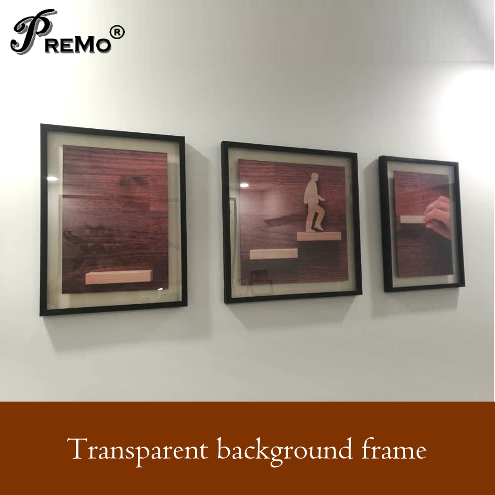 This frame does not have a traditional wooden backboard. It comes with double layer of transparent acrylic cover Putting your artwork in the middle ( double-sided tape the content onto the back) will give a visual effect as if the artwork is "Floating" in the middle of the wall .